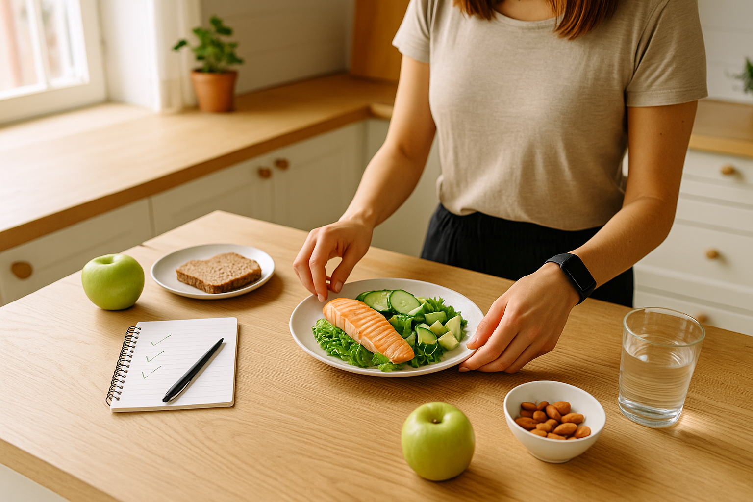 Louise arbejdede skiftevis og sprang tit måltider over. Hun begyndte med tre skridt: skyr til morgenmad, 10 minutters gåtur efter aftensmad og vand før frokost. Efter tre uger mærkede hun mindre småspisning og mere energi – uden at ændre hele sit liv. Da det var nemt, lagde hun grønnere snacks til. Små skridt – store effekter over tid.